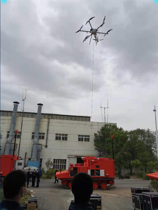 当林区突发山火,地面队伍受地形限制无法快速抵近时,系留无人机率先升空,通过热成像锁定火点坐标,引导消防车精准抵达;