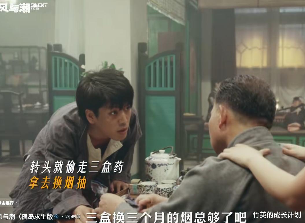 水鬼仔趁着忠叔不注意,从仓库偷走了三盒医药,他拿着这三盒药去烟馆想要换三个月的烟。