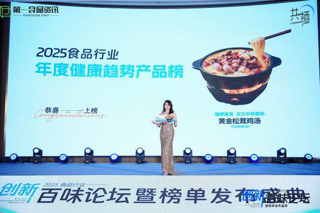 本次论坛上,立达老汤凭借突出的产品创新能力和对市场趋势的敏锐把握,迎来高光时刻。公司两款标志性产品——“黄金松茸鸡汤”与“螺蛳土豆粉汤底”,从众多参赛产品中脱颖而出,分别荣登“2025食品行业年度健康趋势产品榜”与“2025食品行业年度超级单品榜”。
