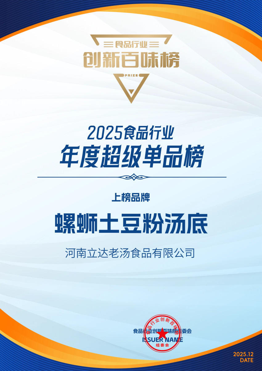 此次在行业权威平台上的双重获奖,是认可,更是新起点。充分印证了立达老汤在传承中华汤品文化的同时,以前瞻的研发视野与扎实的产品力持续推动行业创新。