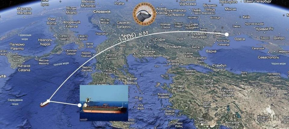 CyberBoroshno称,乌克兰无人机从空中投弹袭击地中海的俄罗斯影子船队的油轮“昆迪尔”号,距离乌克兰约1400公里。