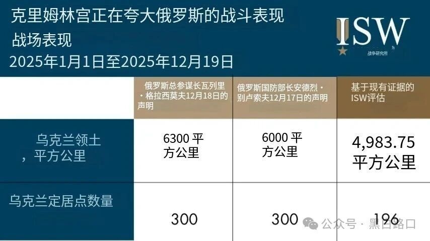 战争研究所(ISW)称,俄罗斯正夸大战场的胜利,以强调俄罗斯在战场上取得胜利是不可避免的的错误说法,俄罗斯未能取得宣传的“战果”,反而遭遇重大损失。