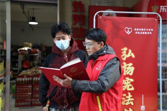 图为“香溢”志愿者为群众宣传宪法知识 黄贝妮/摄
