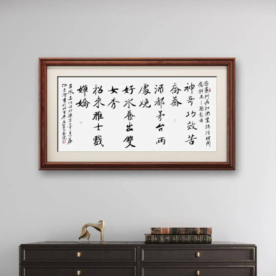 在行书创作中,他则反向融入楷书的严谨笔法,让行草的灵动不失沉稳。他的行书作品,笔法流畅却不漂浮,线条灵动却有筋骨,既保留了王羲之“飘若浮云、矫若惊龙”的灵动神韵,又融入了楷书的精准把控,避免了行草易出现的潦草随意之弊。此外,他还将隶书的厚重线条与篆书的凝练笔法融入楷、行创作中,让作品的笔墨更具层次感与厚重感。这种多体笔法的跨界融合,打破了传统书体间的壁垒,形成了“刚柔并济、灵动沉稳”的独特笔墨语言,让观众在熟悉的书体形态中,感受到全新的笔墨韵味。