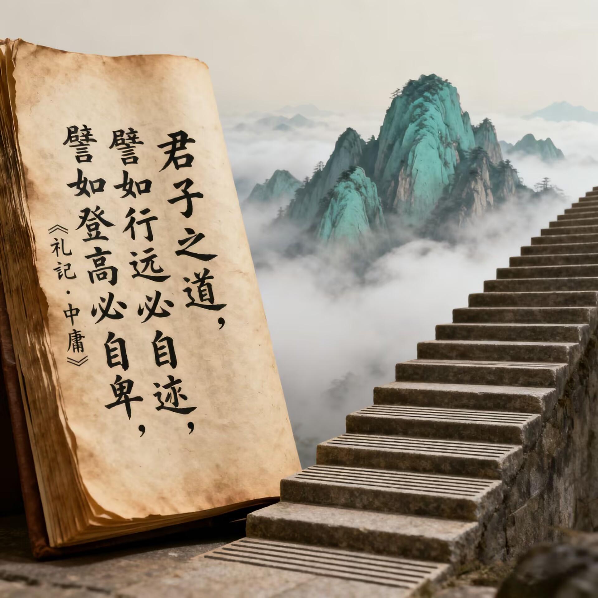 道家老子 “千里之行始于足下” 的论述,与 “行远自迩” 形成跨学派共鸣,印证了循序渐进是中华传统文化的共同精髓。不同学派虽路径各异,却都认同踏实积累、逐步前进的价值,这一智慧跨越千年仍具生命力。