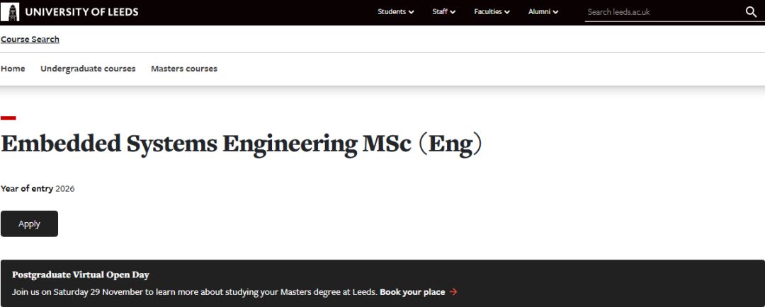 英国留学申请案例:江苏海洋大学电子信息工程专业的同学,以均分85+有雅思的背景,通过金矢留学成功申请到了2026QS世界大学排名第86位的英国利兹大学嵌入式系统工程硕士,下面一起来看下该专业及录取offer!