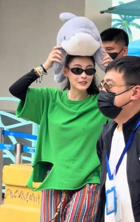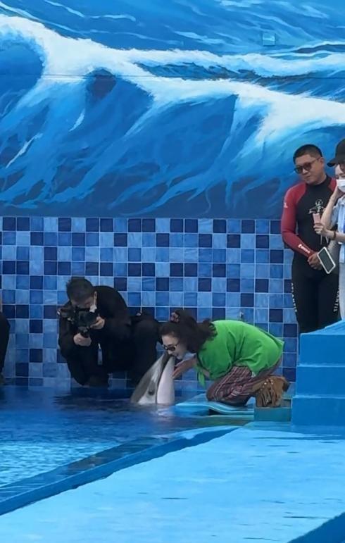有网友捕捉到她在海洋馆内的一幕:她干脆蹲下身子,额头轻轻贴向海豚鼻尖,笑容温暖纯粹,毫无偶像包袱,眼神里盛满孩子般的欢喜。