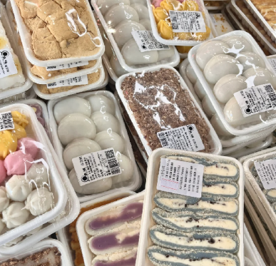 一进门就可以看到很多的韩国打糕,平常都是卖十块一盒,晚上会打折,买一送一,真的很划算,口味不算太甜,口感糯叽叽奶香奶香的,有点像驴打滚,建议大家买回去放冰箱冷藏一会口感更好~