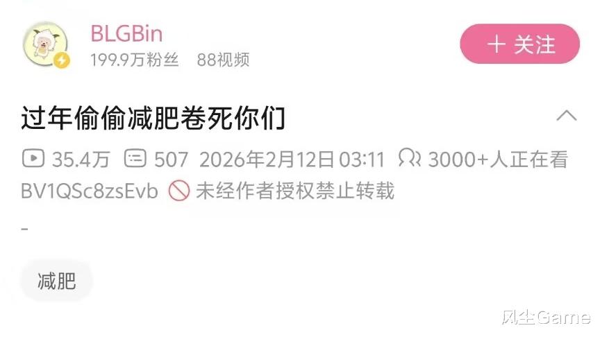 自从收官战输AL之后,Bin哥的精神状态,就有点不正常了,前几天Gala晒健身照,Bin吹自己天赋比嘎子好,只是没有认真练,被大家嘲讽之后,Bin哥开始认真了,他在凌晨3点发健身视频,并且配文:过年偷偷减肥卷死你们,视频里的Bin大哥,一直在健身房里面撸铁,脸上全都是汗。