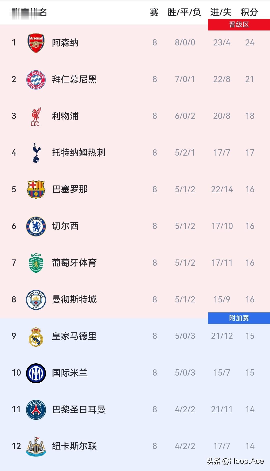 另外就是曼城,皇马赛前已经拿到15个积分,完全掌握住命运,从后续结果看,皇马只需要一场平局就可以直通16强,特鲁宾锁定胜局的头球将皇马拖至附加赛,而曼城幸运的以第8名的身份直接晋级16强!