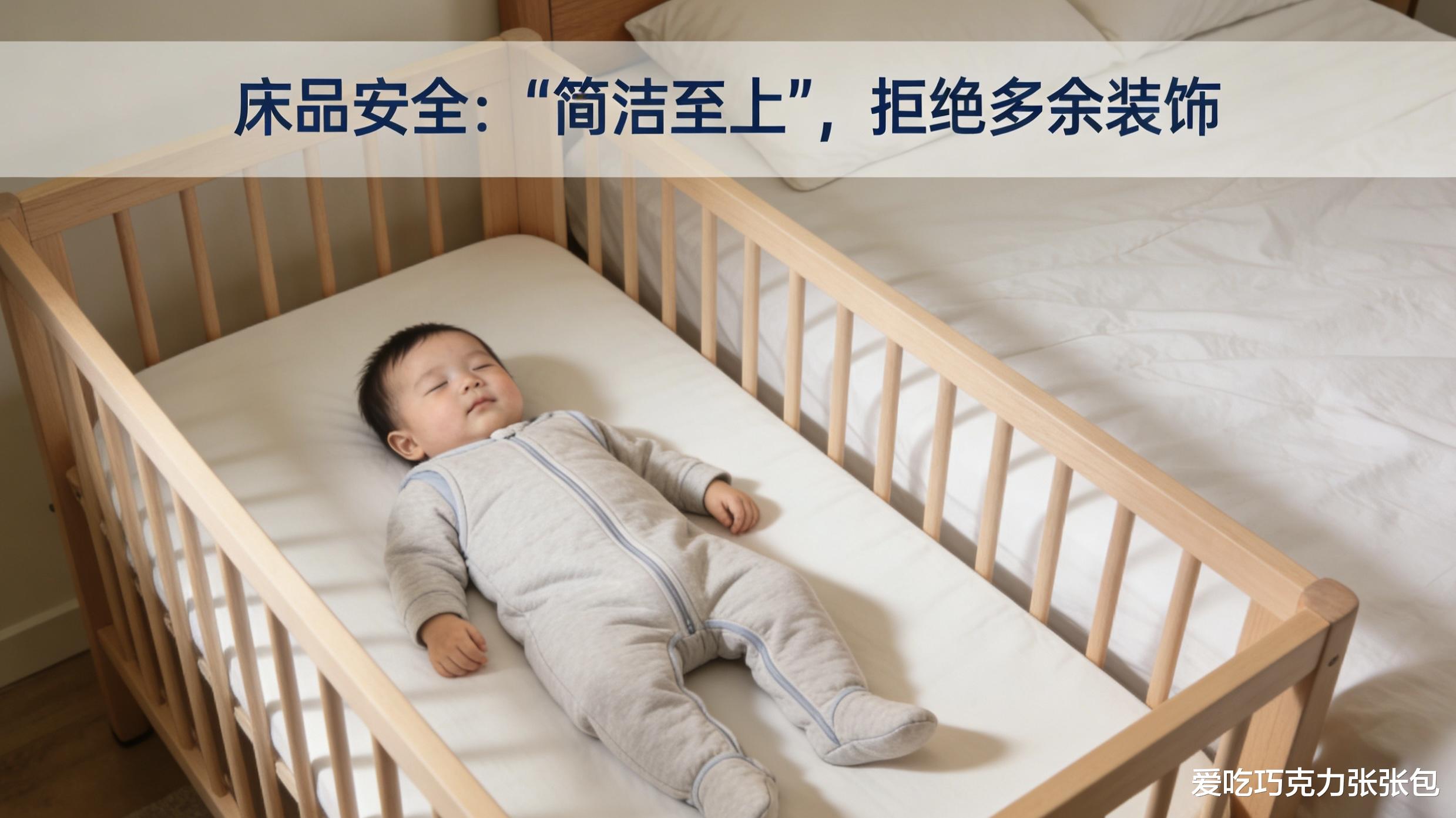 重点提醒:0-1岁的婴儿床里,绝对不能放枕头、毛绒玩具、松散被褥和床围!这些物品可能会捂住宝宝口鼻,引发窒息危险。如果担心宝宝着凉,就用分腿睡袋替代毯子,睡袋的尺码要合适,既不会勒到宝宝,也不会让TA挣脱。