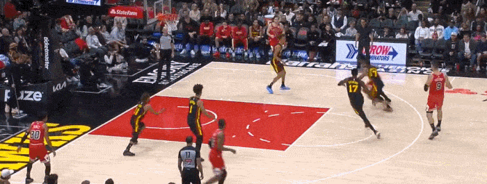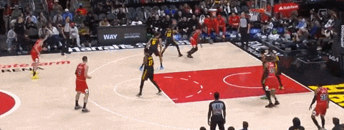 和武切维奇发起挡拆 看到奥孔古位置太靠上 直接给到下顺的中锋