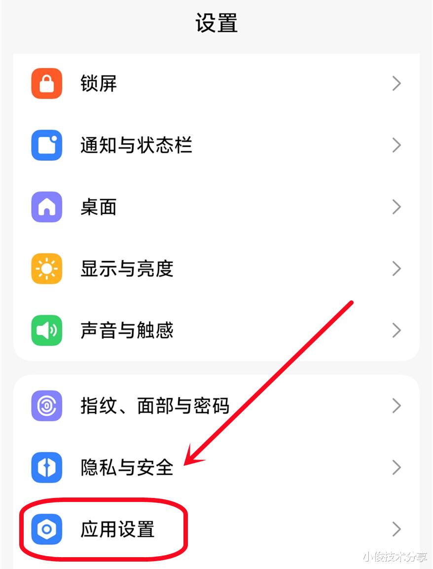 大家不要在桌面找软件图标了,咱们先打开手机设置,然后找到【应用设置】,点击把它打开