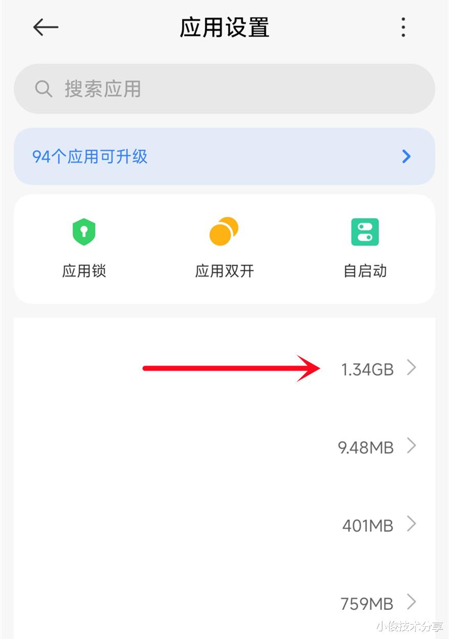 在这里就可以看到手机上面安装的所有软件,现在找到你想要卸载的那个软件,找到目标后,千万不要急着点“卸载”!重点来了:点击这个应用的名字,进入它的 详情页。