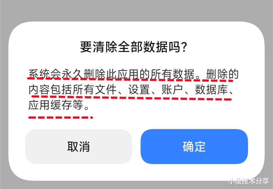 所以现在我们要做的是点击【清除数据】 和 【清除缓存】 ,系统会提示你,此操作会删除账号、设置等信息。对于确定要卸载的软件,放心点“确定”就好。
