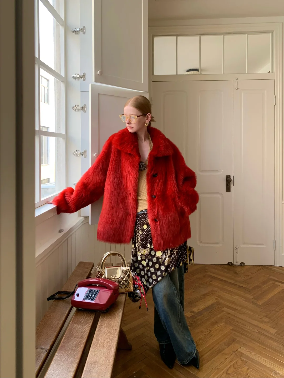 在清冷萧瑟的季节里,我们恰好需要这样一团 “火焰”,用炽热的色彩唤醒沉闷的穿搭,让厚重的秋冬单品也能拥有戏剧性的复古魅力。