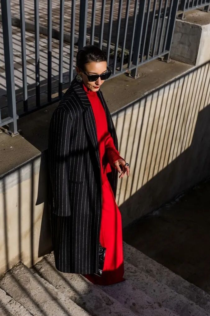 如果怕把控不好,那就给红色搭配黑白灰,稳妥又不容易出错,还衬肤色。