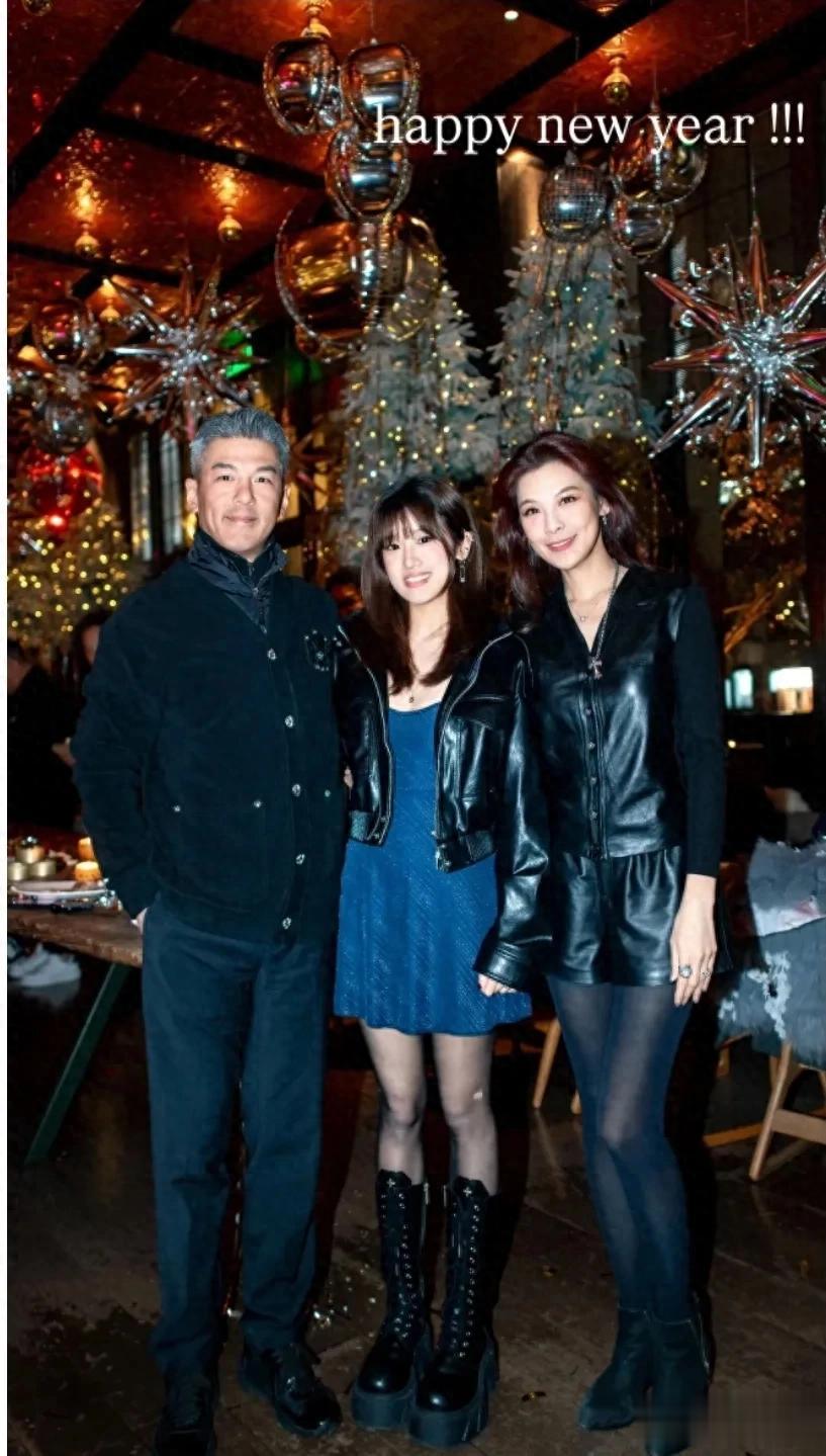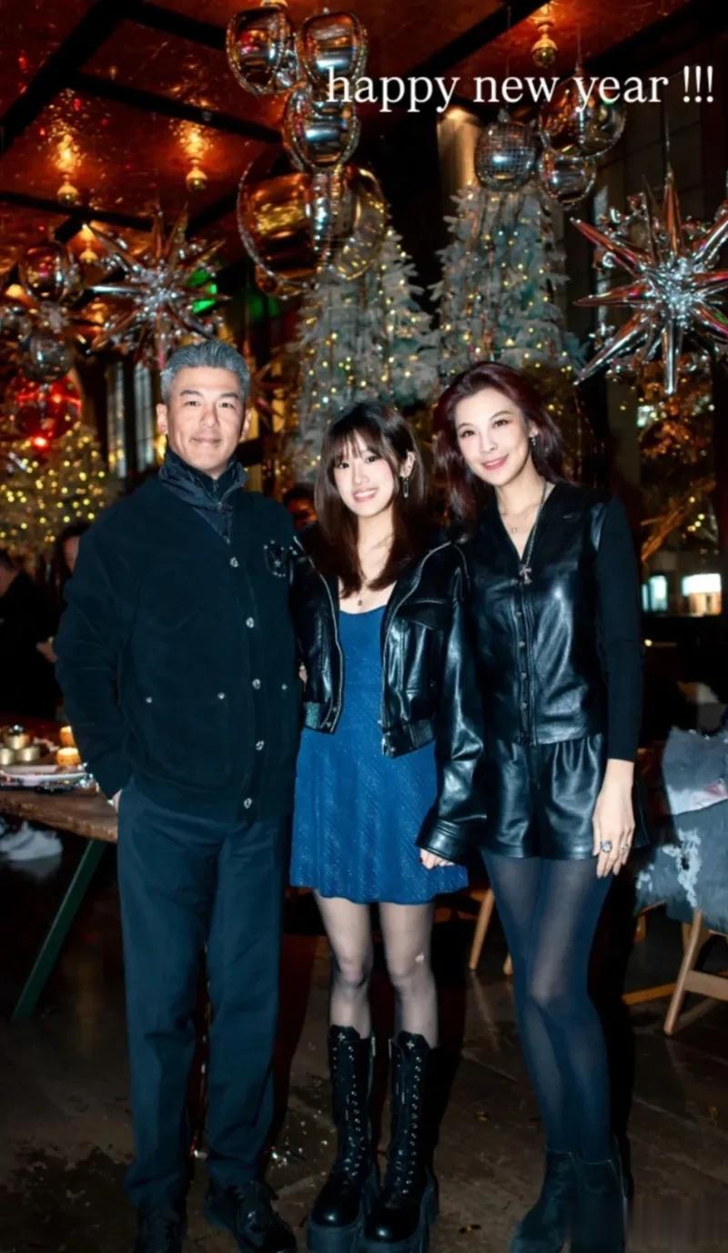 近日,她在社交媒体晒照,和爸爸、后妈一起跨年,共度美好的节日。