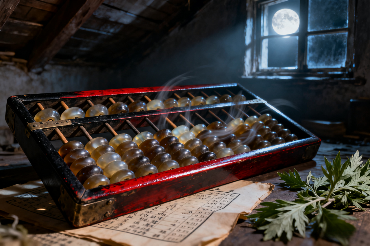 第二天早上,在玻璃柜里发现了干枯的艾草叶子,正好落在算盘的“天”位上。那是太爷爷账本上经常记的位置,代表“良心账”。
