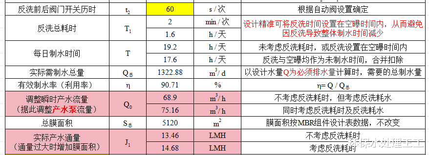 由于反洗过程中产水泵需要停止工作,不能产水,在考虑反洗影响的情况下,要对产水泵流量和实际通量进行调整和校核。