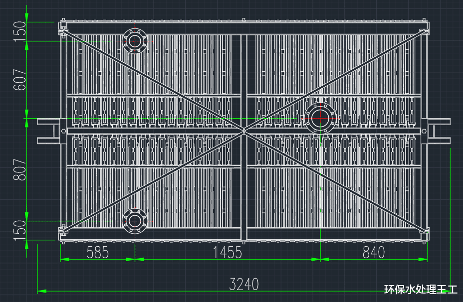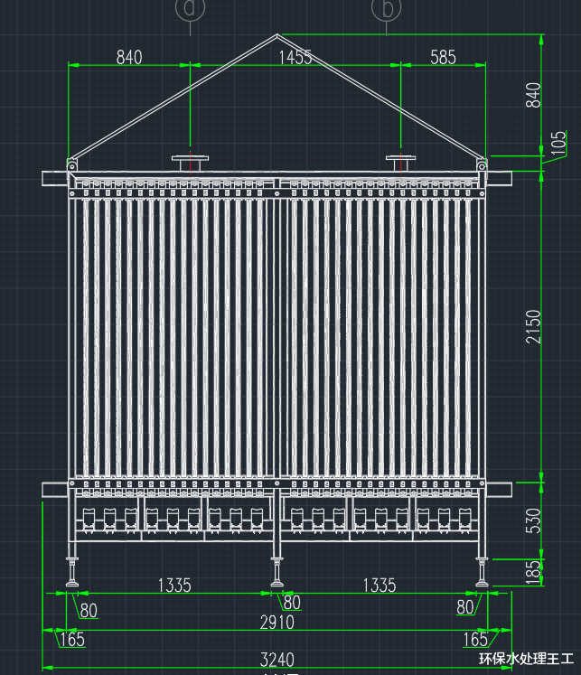 通过膜架的高度和水深,计算出来膜池的面积,再通过膜架之间以及膜架与池壁之间的间距,计算出膜池适合的长和宽。