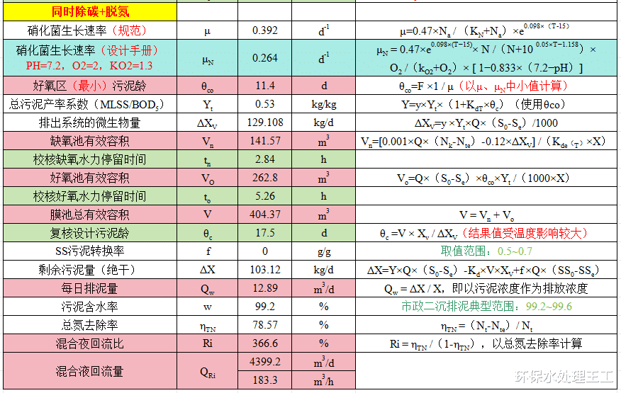 需要同时除碳与脱氮时,则需要使用硝化菌的生长速率进行计算。由于温度对硝化菌的影响比较大,计算时,应考虑低温影响,采取项目所在地最低温度计算。
