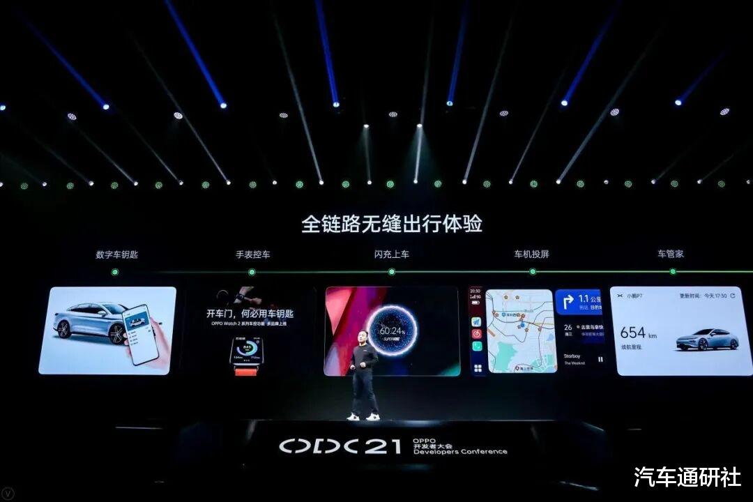 2020年开始,OPPO、vivo开始密集地进行车机技术落地。OPPO先是在2020年4月与比亚迪合作推出NFC车钥匙,开启车机互融生态业务,之后又将SUPERVOOC超级闪充与AIRVOOC无线闪充技术开放至车载快充领域,并应用于比亚迪、小鹏、理想等品牌。vivo则在当年9月与百度达成 CarLife+ 合作,共同打造全场景智能车载解决方案,并在百度世界大会上正式发布了Jovi InCar车联网品牌,为存量汽车用户提供手车互联体验。