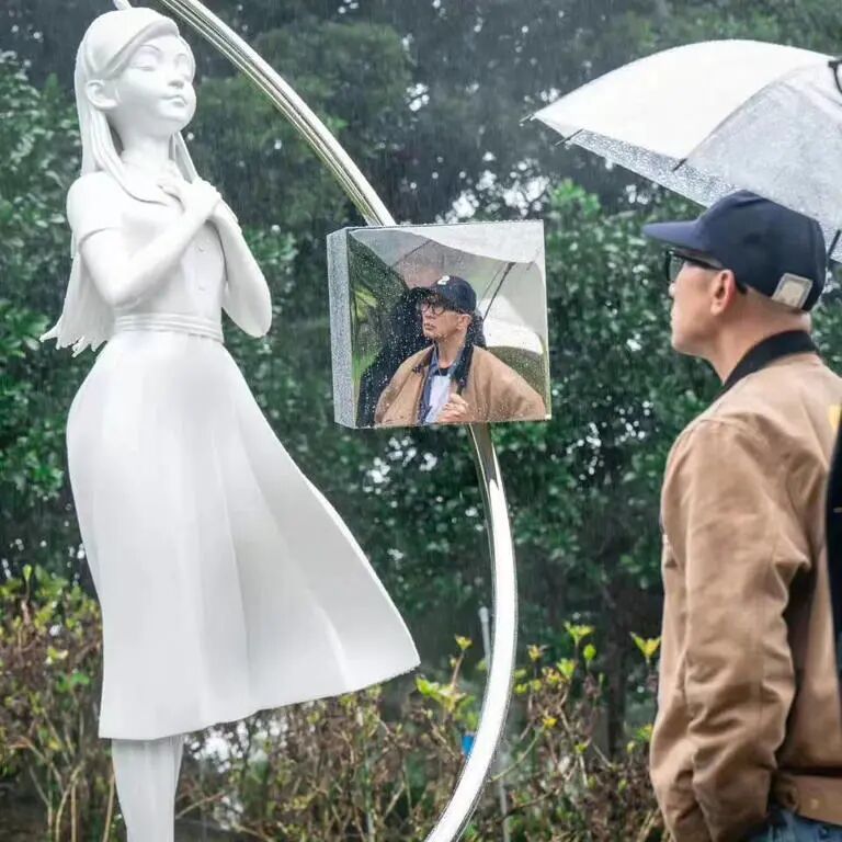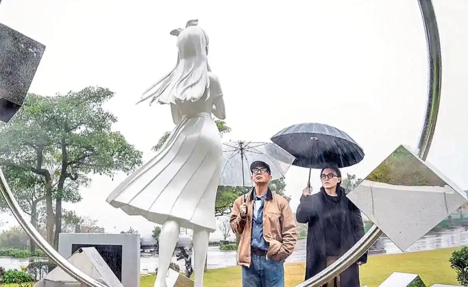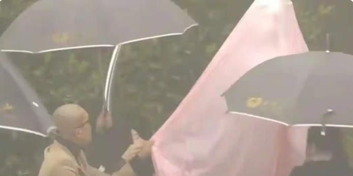 > 一把雨伞挑开粉红幕布,卡通雕像引发全网群嘲,
