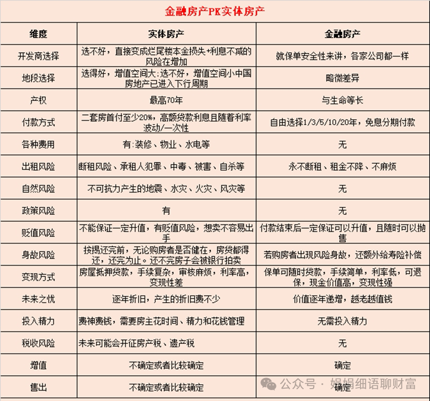 三、本质差异:实体房产vs金融房产两者的核心区别一目了然: