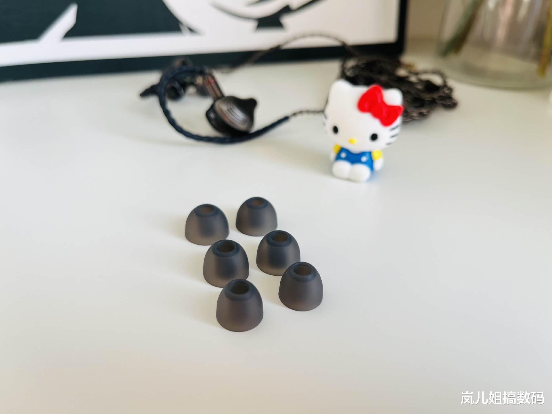包装盒内包含了西圣HiFi耳机、耳机线、说明书、合格证,还配送了3副耳帽、一根USB-A转3.5mm转接线。