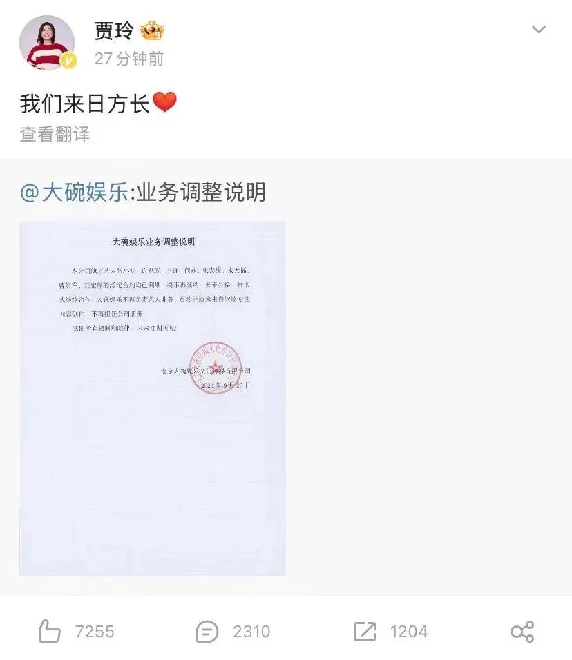 倘若说减肥是贾玲对自己肉体疆域的收复,那么解散“大碗娱乐”的艺人经纪板块,便是她对资本逻辑最狠绝的一次“断舍离”。