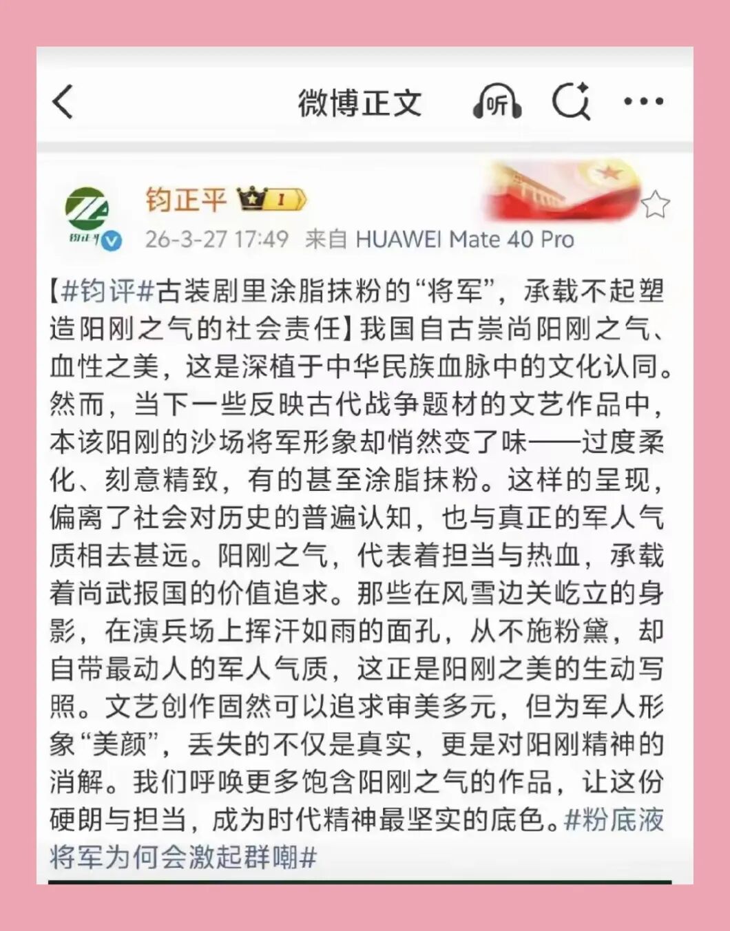 另一边,军媒钧正平就批“去雄化”“阳刚之气缺失”。