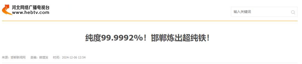 国产5N级超纯铁一量产,全球超纯铁市场瞬间变天。