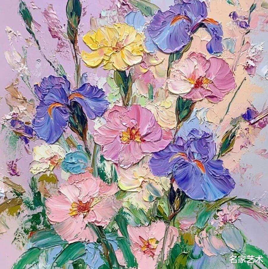 “紫气东来”的典故,为这幅山水赋予了深厚的文化底蕴。那漫卷的云霞不仅是视觉上的美景,更象征着祥瑞与福运,与旭日的希望之意相融,让画作超越了单纯的山水描摹,成为对美好生活的寄望。画家以传统笔墨为骨,却不拘泥于古式,花卉的点染鲜活灵动,色彩的运用明快却不艳俗,既保留了水墨山水的空灵意境,又贴合当代人对吉祥美学的追求,是传统与现代的巧妙融合。