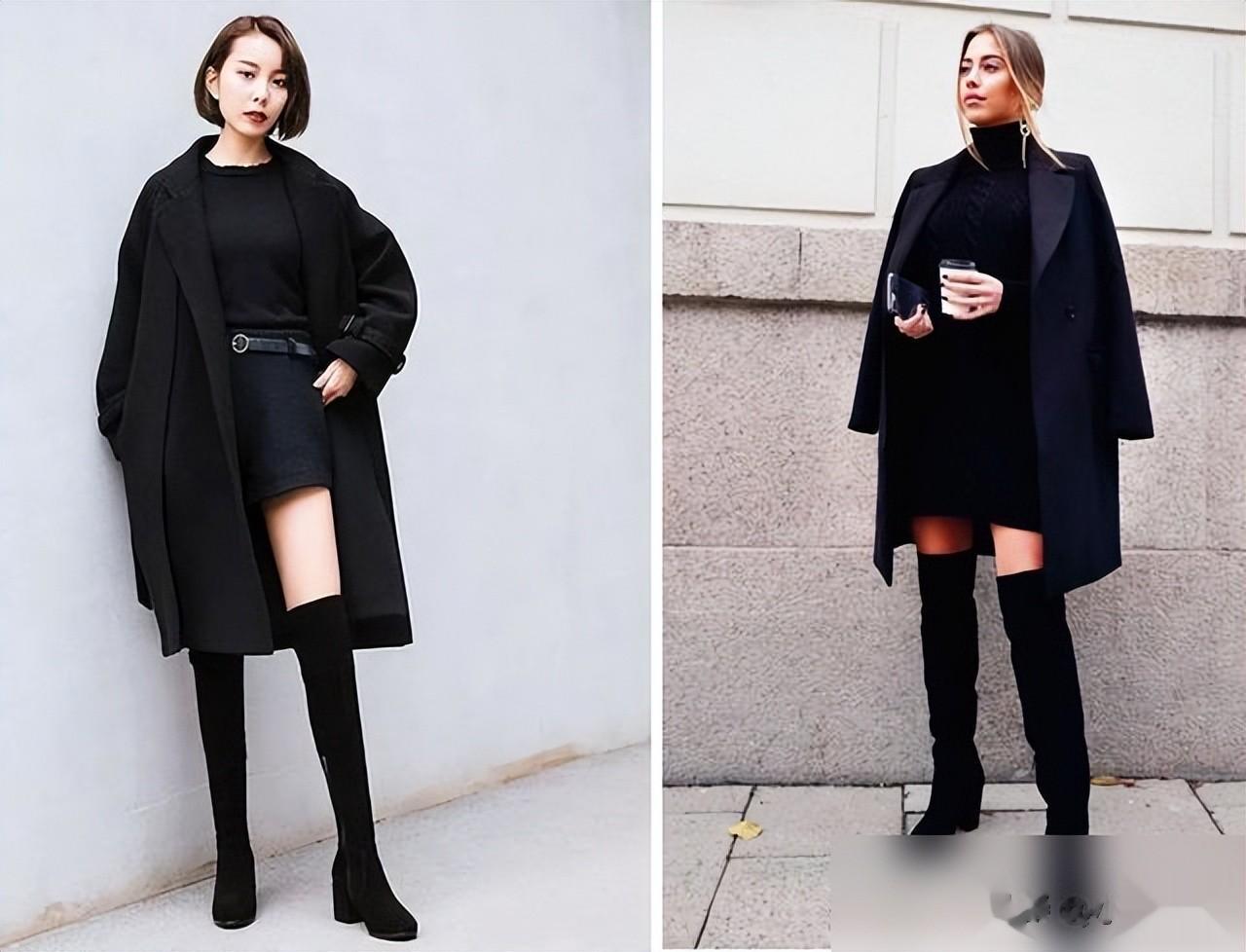 单品搭配上,大衣配过膝靴是经典组合,选基础款纯色系,高级又不挑人。