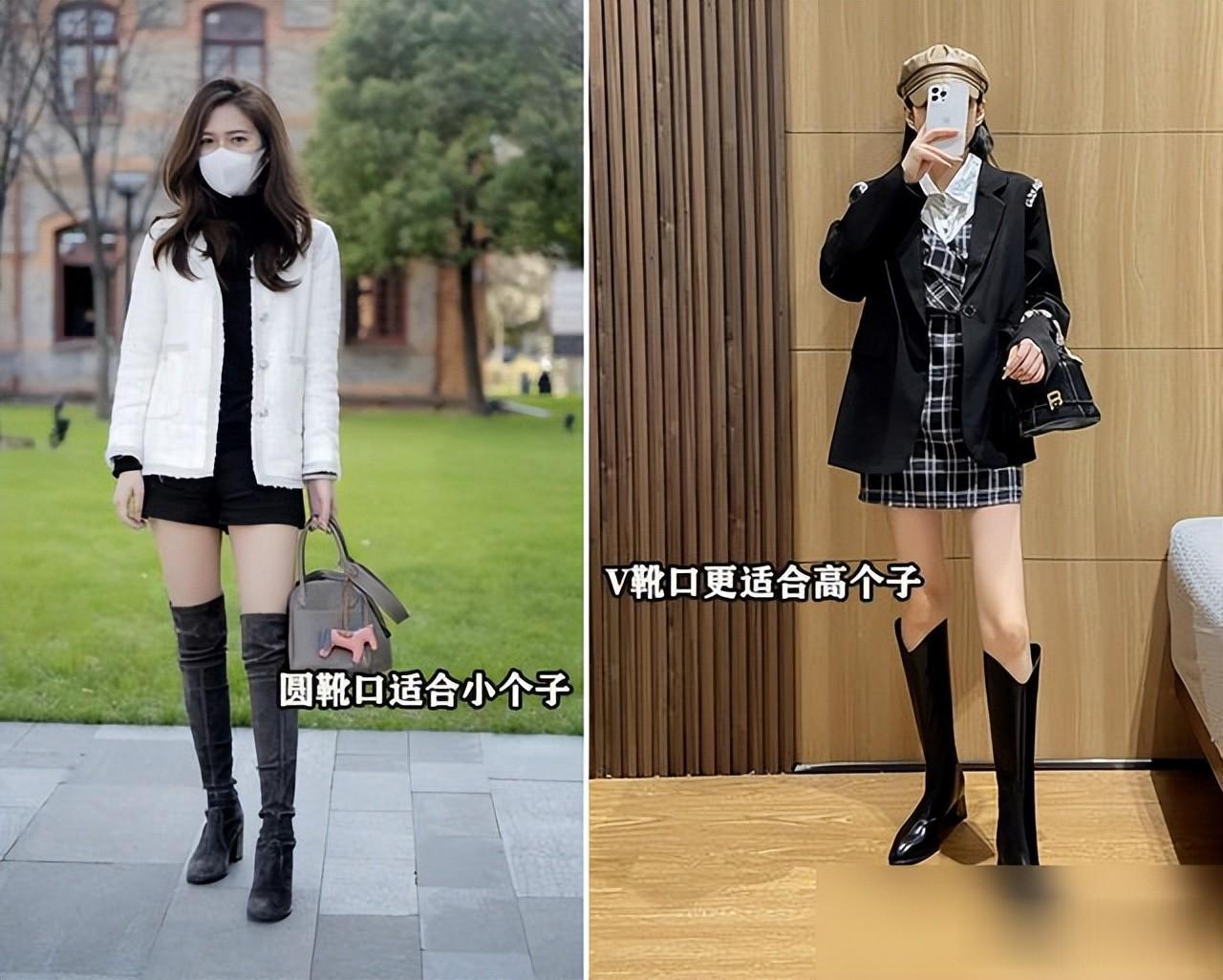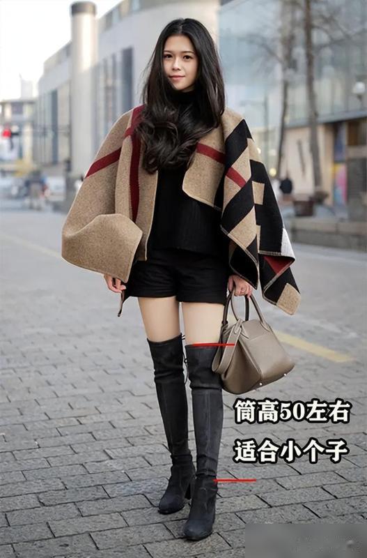 小个子姐妹腿偏短,靴筒别贪长,50厘米左右最保险,太高了堆在大腿根像个桶。