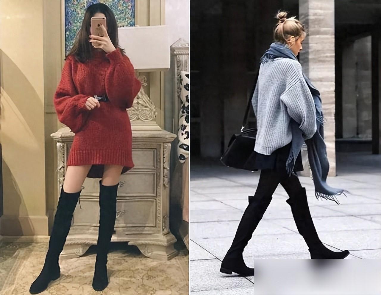 现在街头上过膝靴的出镜率越来越高,尤其立冬后成了不少人的心头好。