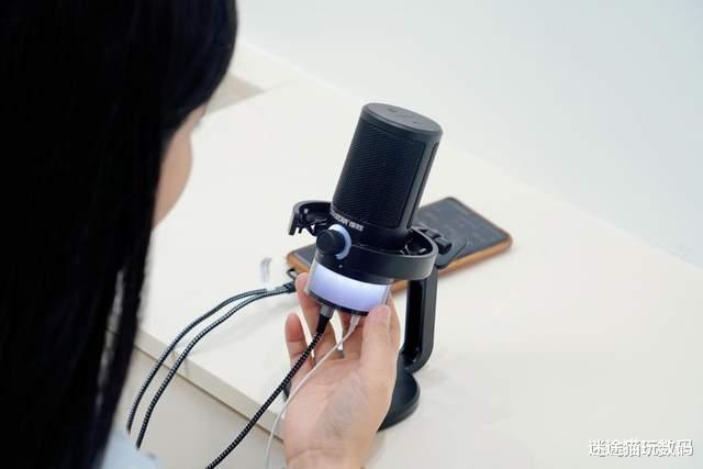 得胜GX3的诸多细节设计,精准命中了创作者的实际需求。麦克风正面的旋转式音量调节按钮,阻尼感适中,转动时能精准控制音量大小,录制过程中可以实时微调,避免出现音量过大失真或过小听不清的情况。