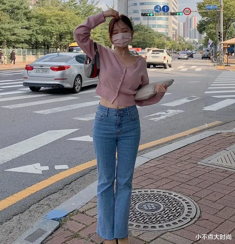 V领的宽松针织衫温柔又松弛,下身搭配牛仔阔腿裤,牛仔自带的硬朗面料保持了穿搭的筋骨感,既休闲随性又利落显高。一整套简约韩系,气质又松弛。▼