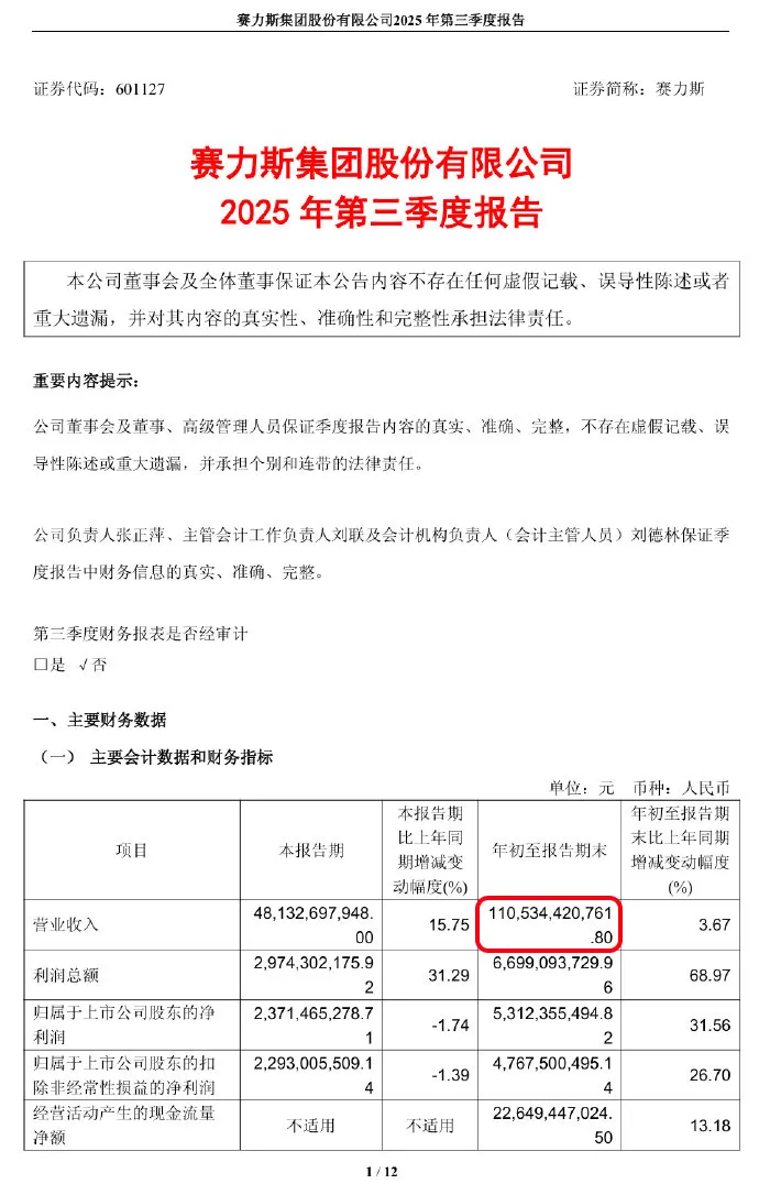 问界母公司赛力斯今年前三季度实现营收1105.34亿元,同比增长3.67%,归属于上市公司股东的净利润53.12亿元,同比增长31.56%。11月5日,赛力斯登陆港交所主板,成为国内首家“A+H”两地上市的豪华新能源车企。