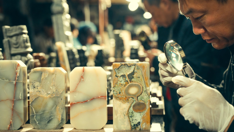 收藏田黄最难的是分辨真假。市场上有很多假货,有的用杜陵坑黄、昌化石染色冒充,有的用激光雕假皮假筋。近几年我走了好多次眼,总结出几点实际操作的方法。第一是萝卜丝纹。真田黄内部有细密的放射状纹理,就像萝卜切开后出现的丝,用灯光照射可以看得很清楚;而假的通常都没有,或者人工雕刻出来的,死气沉沉很不自然。第二看红筋格纹。真田黄在形成的时候,氧化铁渗入到裂隙中,形成了天然的红筋,颜色深浅自然过渡;假筋颜色浮,刮一下就会掉。第三看石皮。真田黄有淡淡的橘皮纹或者乌鸦皮,厚薄均匀,过渡自然;假皮则常常太薄太匀,像是贴上去的一样。第四步是看质地、光泽。真田黄细腻温润,透光像凝脂,敲击声清脆不闷;假的则粗糙或者光泽死板。第五个就是闻一闻味道。老田黄盘时间长了会有淡淡的土香味,新的或者假的都没有。