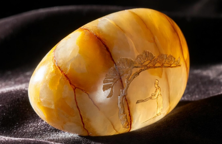 我的老前辈后来请福州本地权威机构鉴定,结论是清中期老坑田黄薄意松荫高士图摆件,重128克,萝卜纹红筋俱全,估价600-800万。不舍得卖,放在案头上天天盘,现在包浆更厚了,整块石头活了,发出柔和的金光。我也跟着学到了很多田黄的知识。