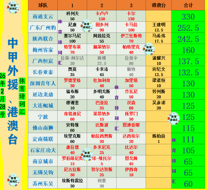 昨晚中超冬季转会窗正式关闭,16支球队注册了84个外援,其中4人不在联赛报名,卡隆貌似解约成功。今天距离中甲联赛关窗则还有一周的时间,近期各队也在积极官宣新援,16队满额48个外援席位,如今已经有42人官宣成功,剩余6个空位,只有一个名额没有传闻。