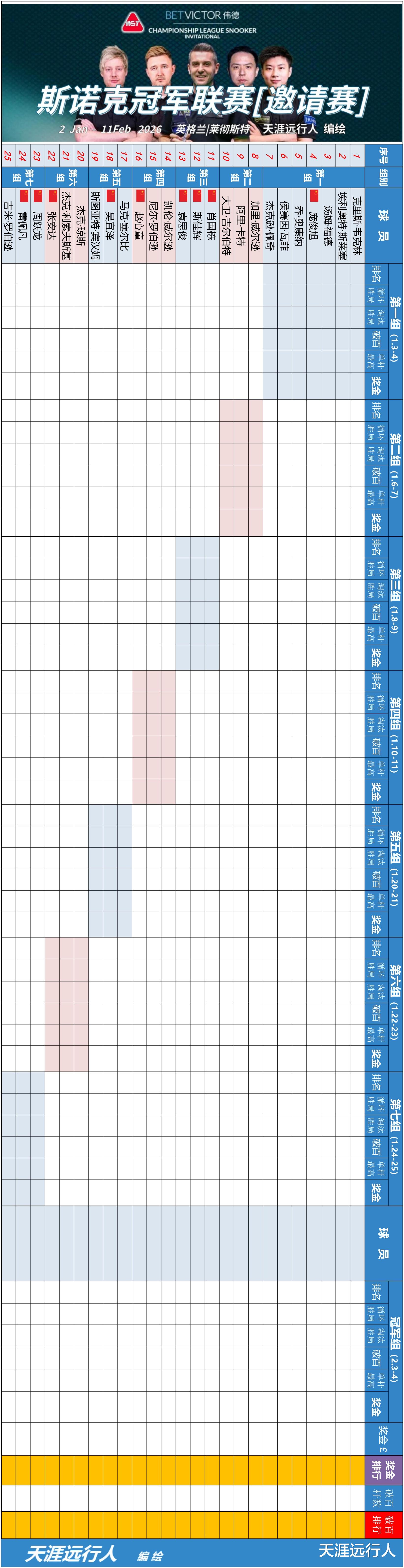 BetVictor 2026斯诺克冠军联赛(邀请赛)完整赛程+观战指南