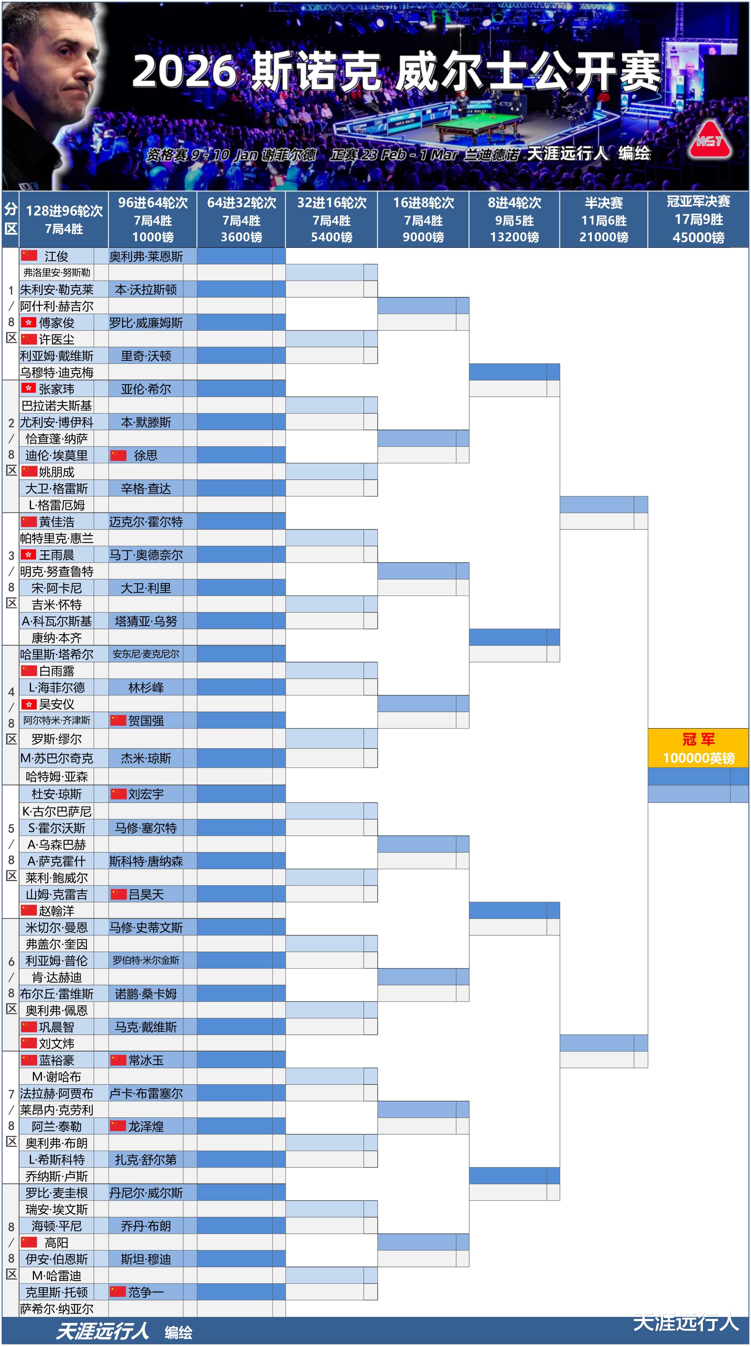 2026斯诺克威尔士公开赛完整签表+资格赛首轮赛程