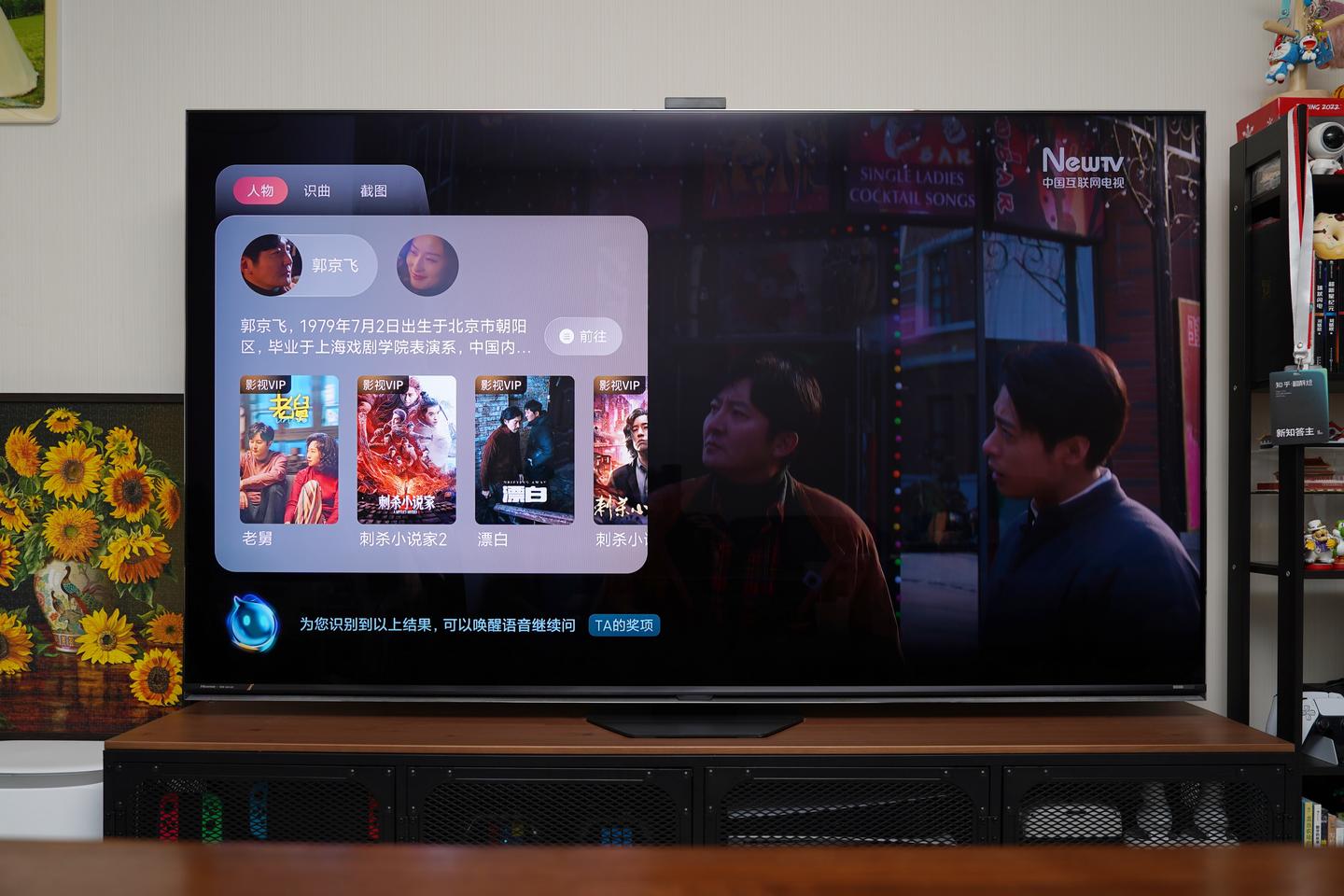 在观看电视的时候,只需要在遥控器上按下AI专属按键,点击人物或是相关物品,就可以自动识别出来目标,并且可以看到相关的资讯以及类似的相关内容,这对于追剧、影视爱好者来说再实用不过了!