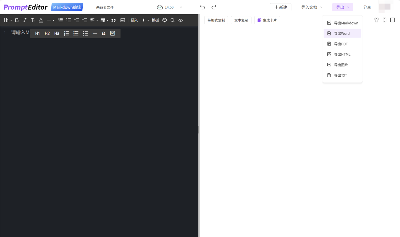 • Markdown智能编辑:轻松调整格式,并支持导出Word和长图,方便内容分发。