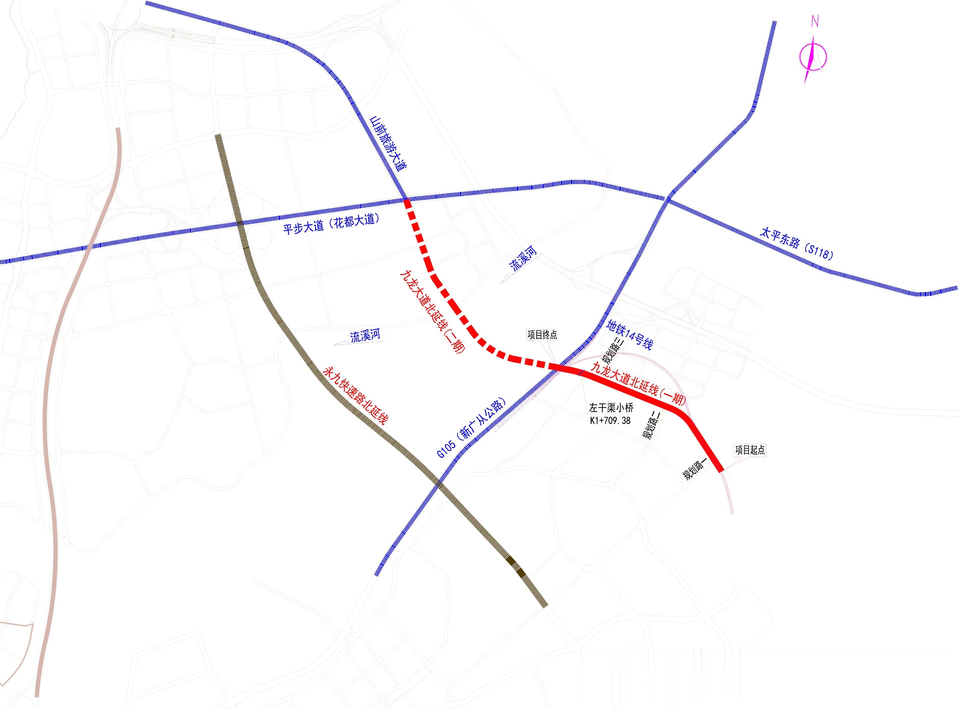 作为广州市2020年攻城拔寨的重点新建市政工程之一,九龙大道北延线工程(一期)于2019年开工建设工,原计划2021年6月建成通车,后因各种原因停工至今。