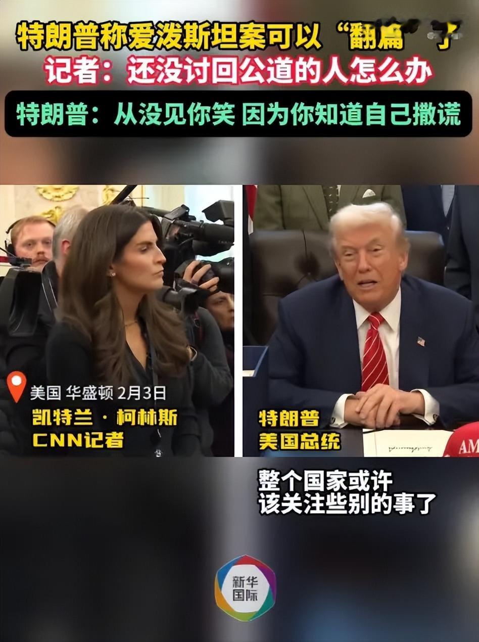 据新华国际消息,当地时间3日,美国总统特朗普在回答美国有线电视新闻网(CNN)女记者凯特兰·柯林斯有关爱泼斯坦案的提问时称,现在该去关注其他事情。