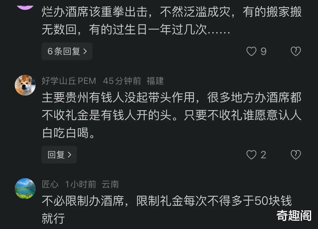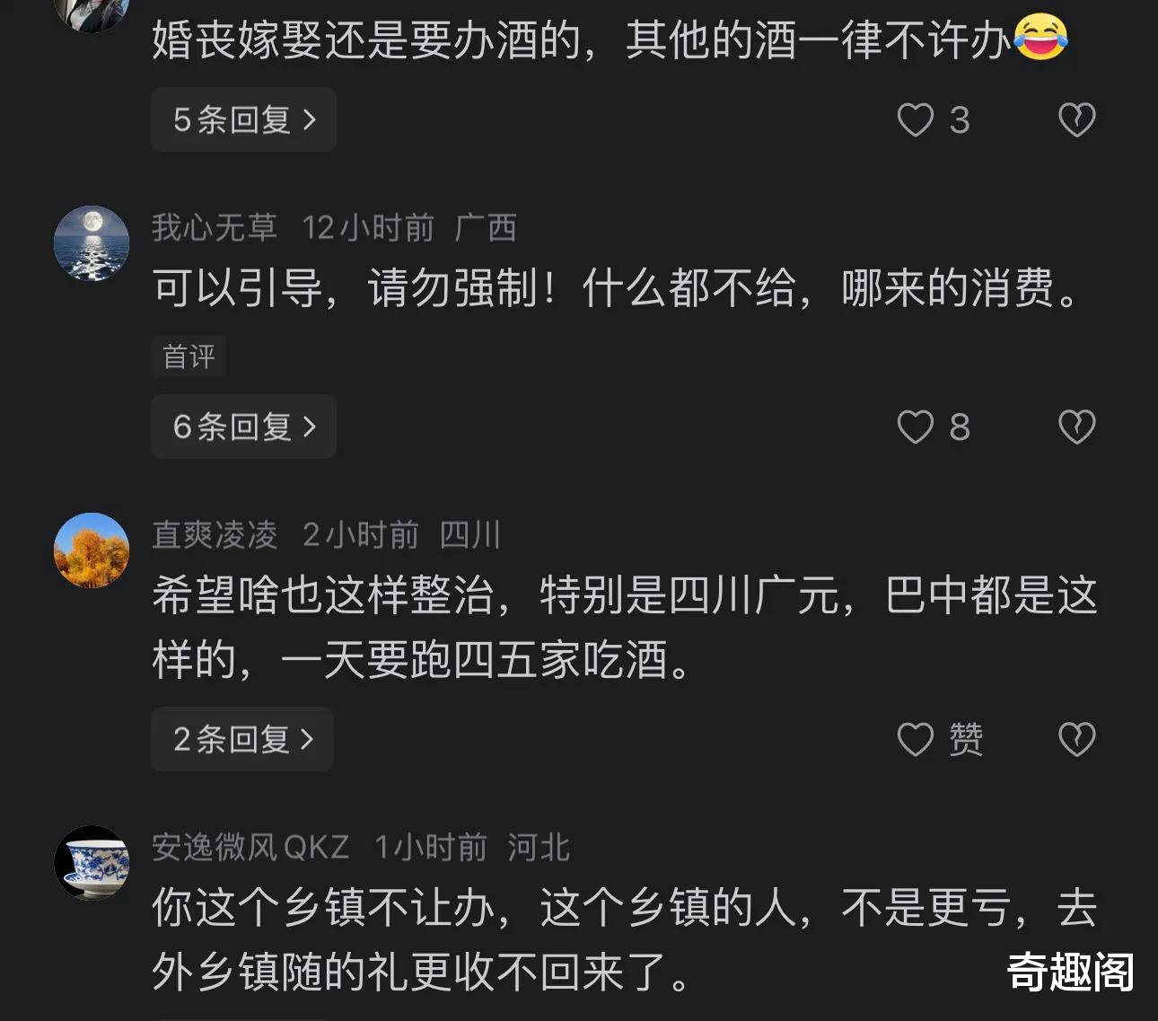 归根结底,这么做是为了遏制当地日益严重的“滥办酒席”之风。据说有人此前有人结几次婚、办几次酒,因为过于铺张浪费,村民投票后才定了这个规矩,就是为了减少这种风气。对此,网友也是纷纷展开热议。一方面,大量的网友表示支持,很多人深受“人情猛于虎”之苦,对无休无止的酒席应酬感到身心俱疲。
